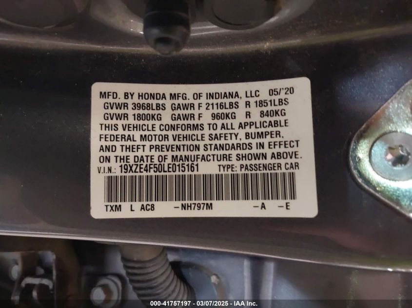2020 HONDA INSIGHT 2020 Hybrid, 1.5, Front wheel drive, VIN - 19XZE4F50LE****** from the USA