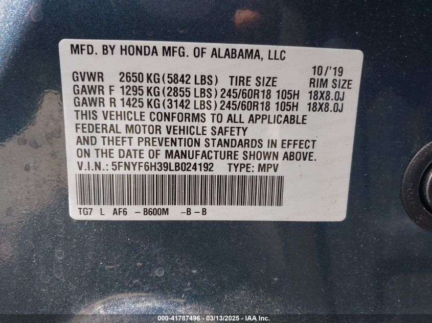 2020 HONDA PILOT 2020 Gasoline, 3.5, Full drive, VIN - 5FNYF6H39LB****** from the USA