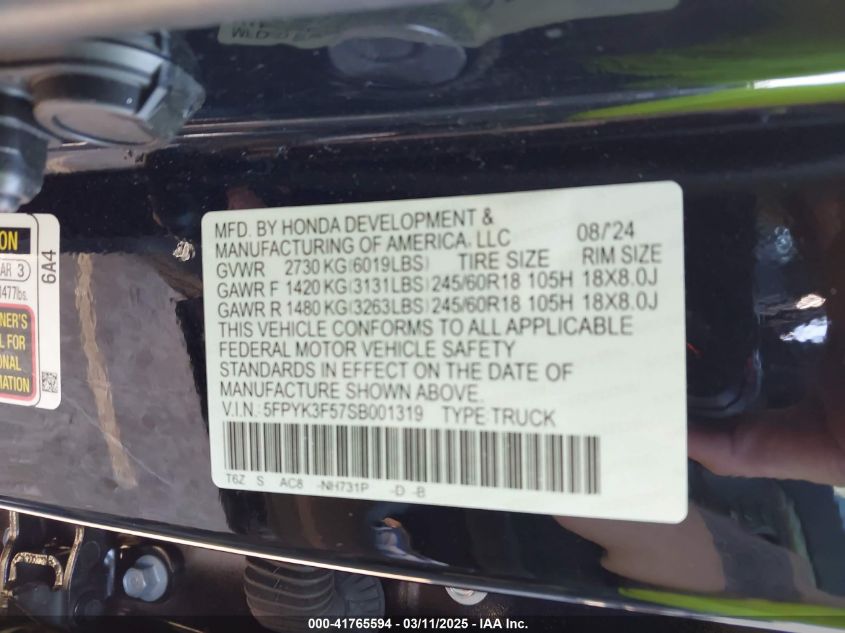2025 HONDA RIDGELINE 2025 Gasoline, 3.5, Full drive, VIN - 5FPYK3F57SB****** from the USA