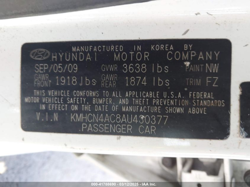 Color WhiteCylinders 4Drive Front wheel driveVIN KMHCN4AC8AU******State Run & Drive VerifiedDamage Rear right AutoRIA