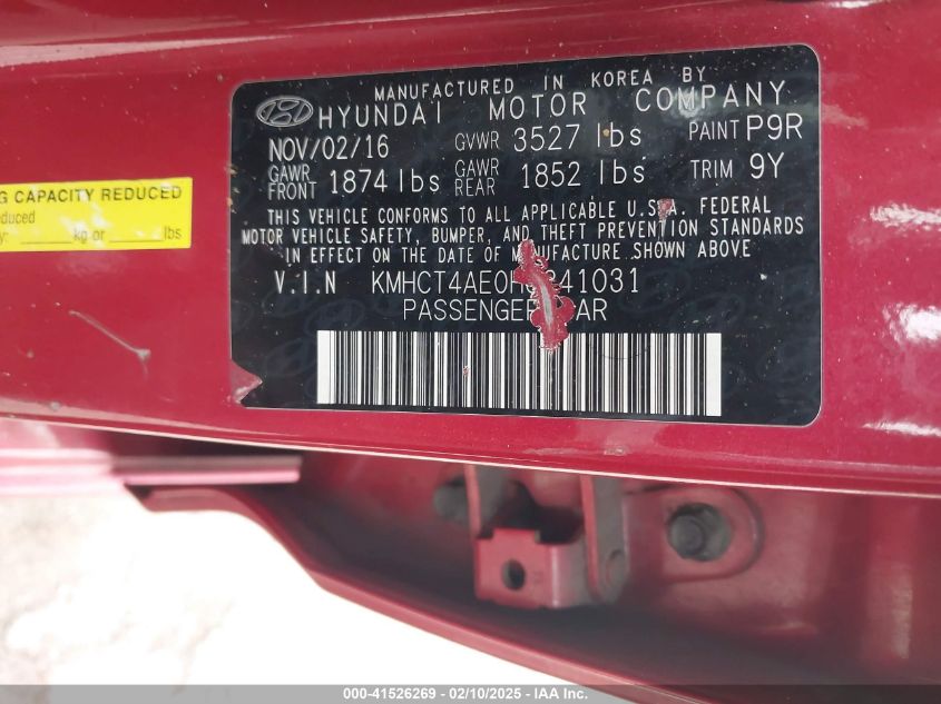 2017 HYUNDAI ACCENT 2017 Gasoline, 1.6, Front wheel drive, VIN - KMHCT4AE0HU****** from the USA