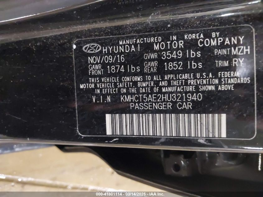2017 HYUNDAI ACCENT 2017 Gasoline, 1.6, Front wheel drive, VIN - KMHCT5AE2HU****** from the USA