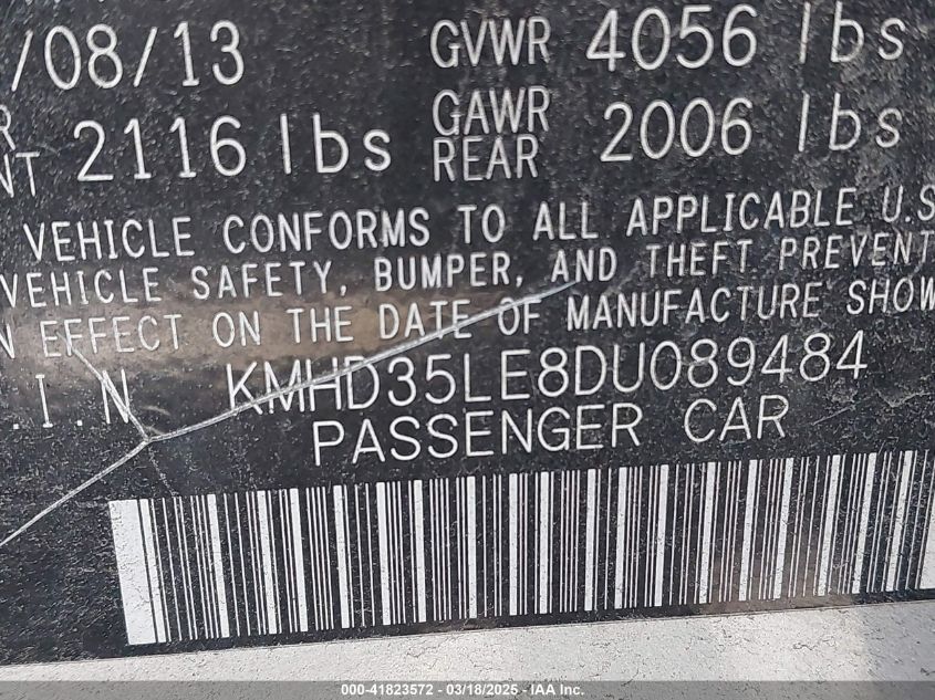 Color SilverCylinders 4Drive Front wheel driveVIN KMHD35LE8DU******State Run & Drive VerifiedDamage Front left AutoRIA