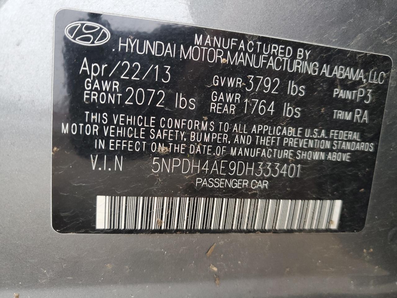 Color GrayCylinders 4VIN 5NPDH4AE9DH333401State StationaryDamage All over the car AutoRIA
