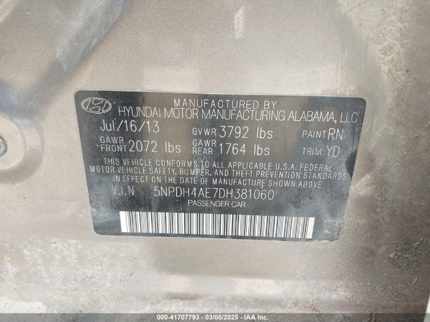 Color GoldCylinders 4Drive Front wheel driveVIN 5NPDH4AE7DH******State Run & Drive VerifiedDamage Front or backAuction date 2025-03-25 AutoRIA