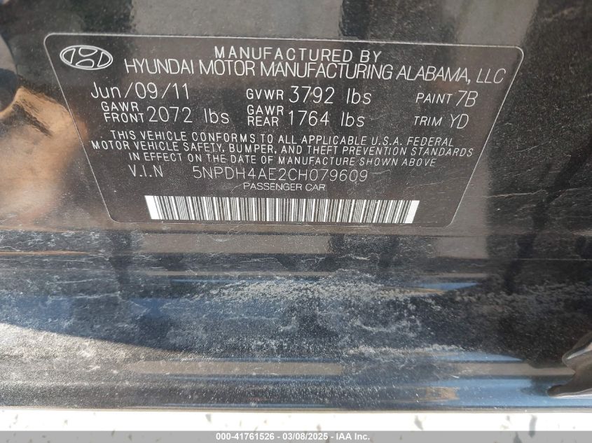 2012 HYUNDAI ELANTRA 2012 Gasoline, 1.8, Front wheel drive, VIN - 5NPDH4AE2CH****** from the USA