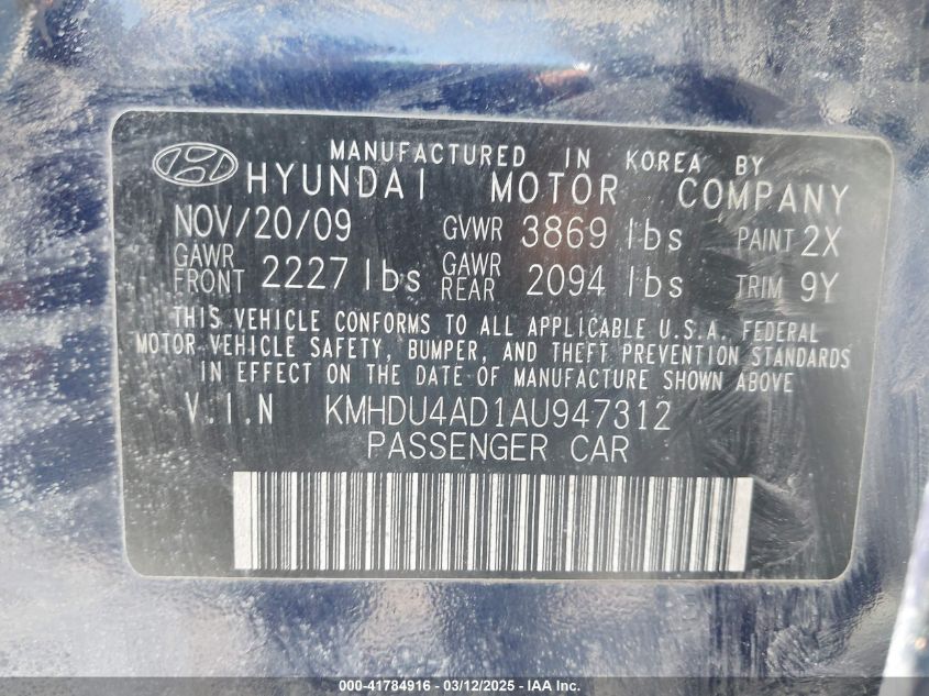 Color BlueCylinders 4Drive Front wheel driveVIN KMHDU4AD1AU******State Run & Drive VerifiedDamage Front or backAuction date 2025-03-25 AutoRIA