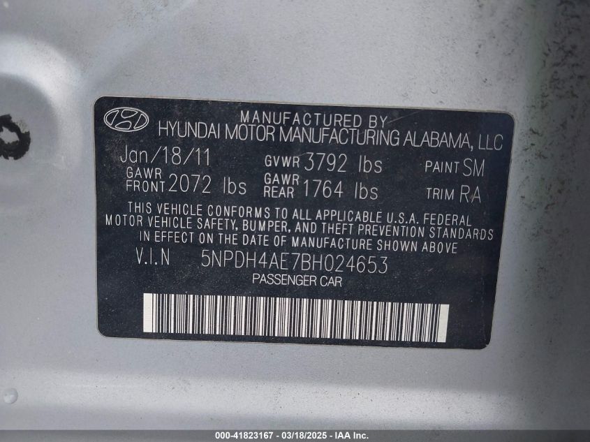 2011 HYUNDAI ELANTRA 2011 Gasoline, 1.8, Front wheel drive, VIN - 5NPDH4AE7BH****** from the USA