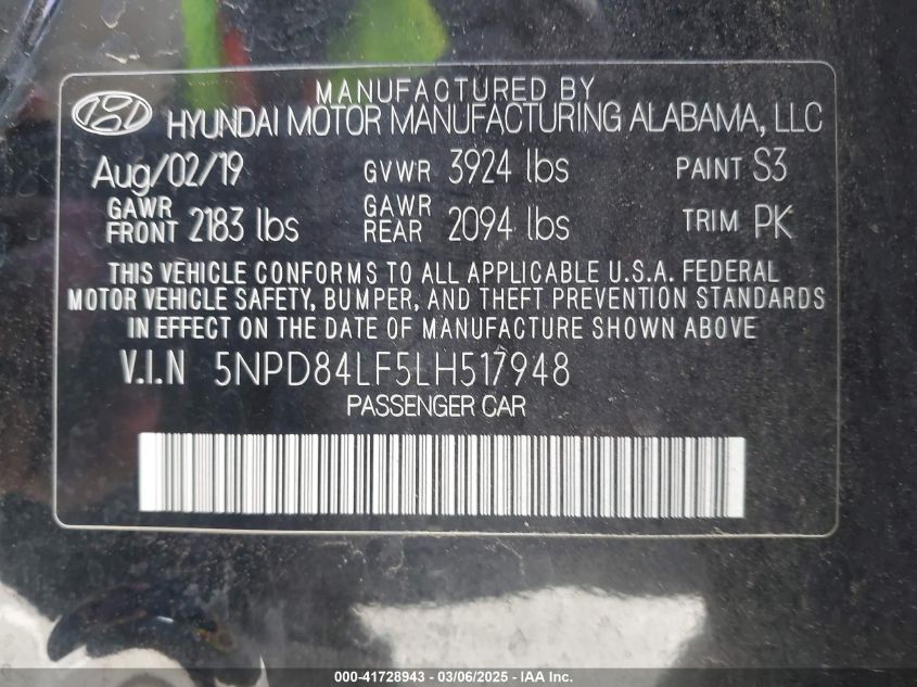 Color BlackCylinders 4Drive Front wheel driveVIN 5NPD84LF5LH******State Run & Drive VerifiedDamage Front leftAuction date 2025-03-25 AutoRIA