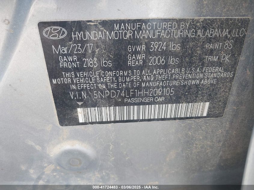 2017 HYUNDAI ELANTRA 2017 Gasoline, 2.0, Front wheel drive, VIN - 5NPD74LF1HH****** from the USA