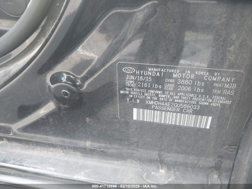 2016 HYUNDAI ELANTRA 2016 Gasoline, 1.8, Front wheel drive, VIN - KMHDH4AE2GU****** from the USA