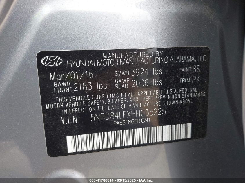 Color SilverCylinders 4Drive Front wheel driveVIN 5NPD84LFXHH******State Run & Drive VerifiedDamage Rear left AutoRIA