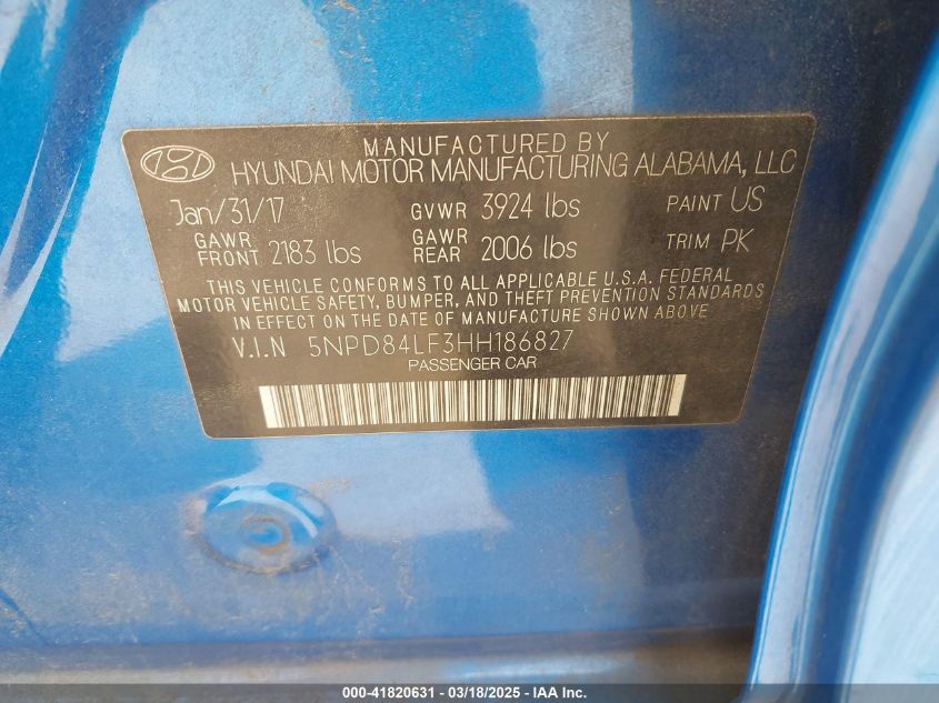 Color BlueCylinders 4Drive Front wheel driveVIN 5NPD84LF3HH******State Run & Drive VerifiedDamage Front or back AutoRIA