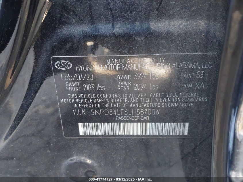 2020 HYUNDAI ELANTRA 2020 Gasoline, 2.0, Front wheel drive, VIN - 5NPD84LF6LH****** from the USA