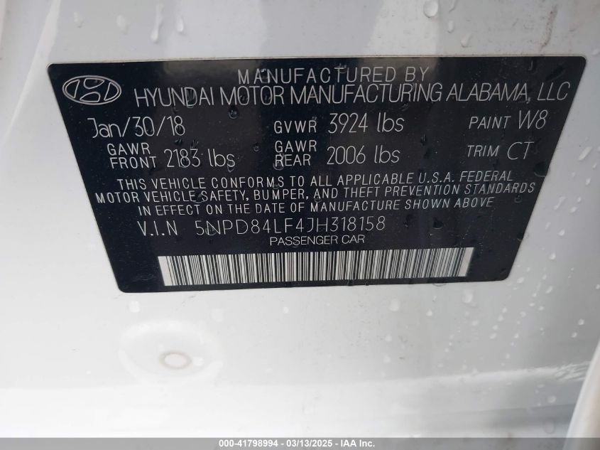 Color WhiteCylinders 4Drive Front wheel driveVIN 5NPD84LF4JH******State Run & Drive VerifiedDamage Front and back AutoRIA