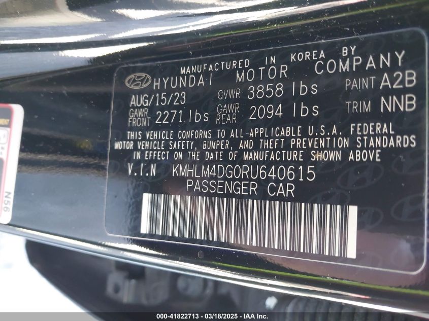 Color BlackCylinders 4Drive Front wheel driveVIN KMHLM4DG0RU******State Run & Drive VerifiedDamage Right side AutoRIA