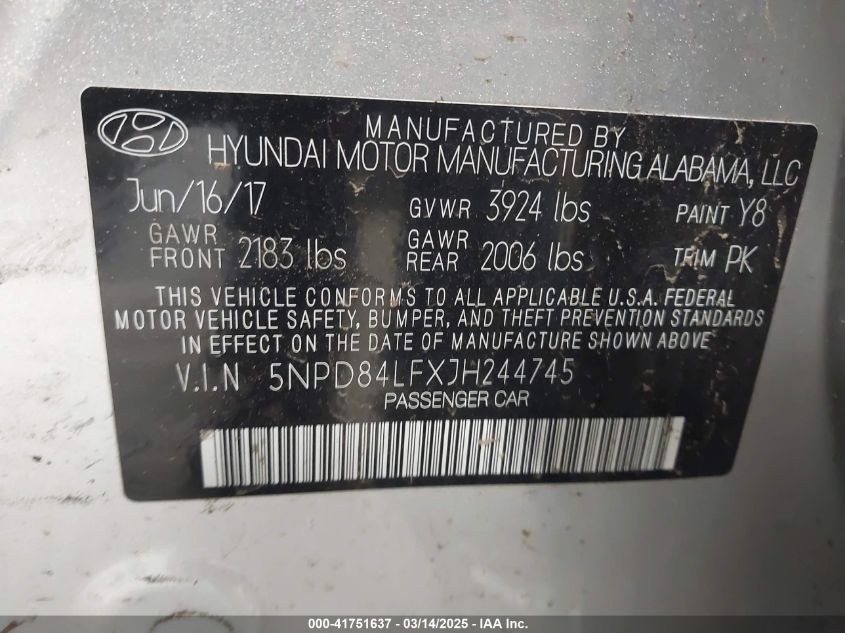 2018 HYUNDAI ELANTRA 2018 Gasoline, 2.0, Front wheel drive, VIN - 5NPD84LFXJH****** from the USA
