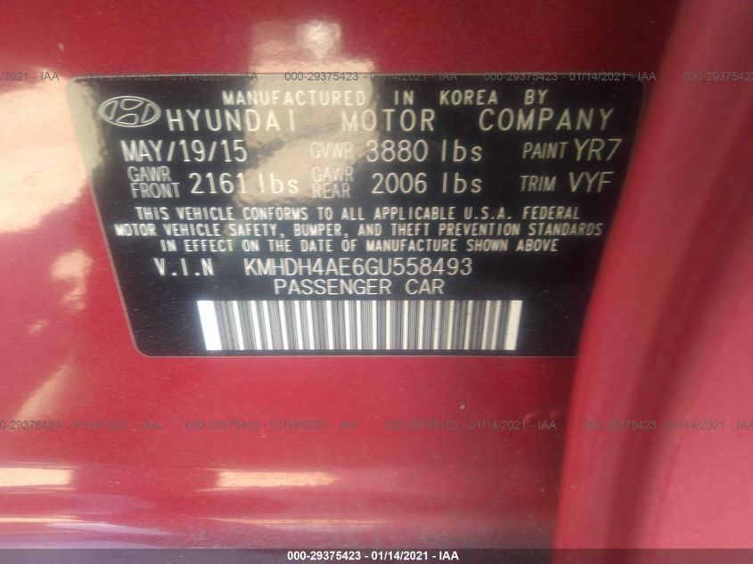 2016 HYUNDAI ELANTRA 2016 Gasoline, 1.8, Front wheel drive, VIN - KMHDH4AE6GU****** from the USA