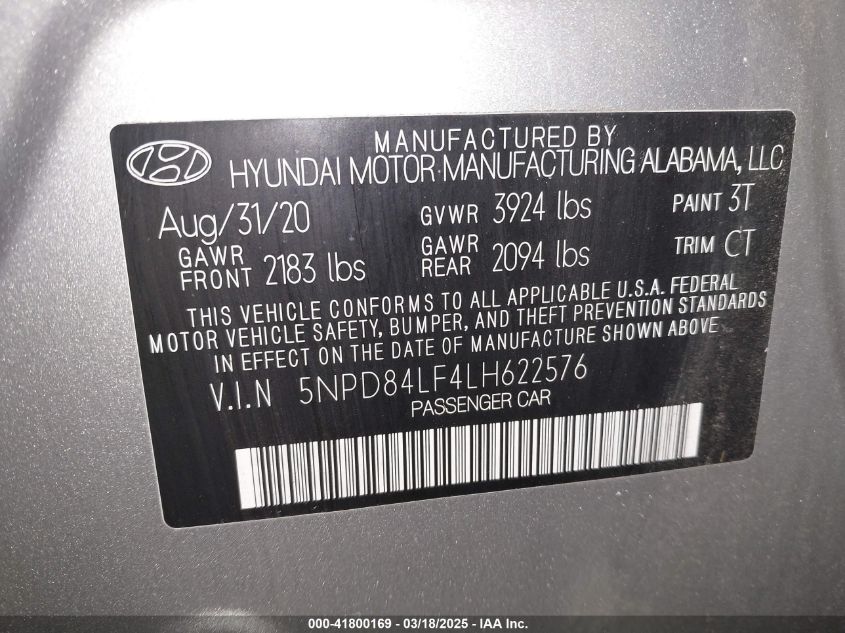 2020 HYUNDAI ELANTRA 2020 Gasoline, 2.0, Front wheel drive, VIN - 5NPD84LF4LH****** from the USA