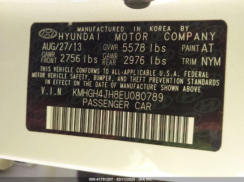 Color WhiteCylinders 8Drive Rear wheel driveVIN KMHGH4JH8EU******State Run & Drive VerifiedDamage InsignificantAuction date 2025-03-25 AutoRIA