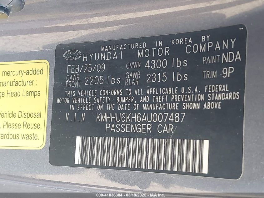 Color GrayCylinders 6Drive Rear wheel driveVIN KMHHU6KH6AU******State Run & Drive VerifiedDamage InsignificantAuction date 2025-03-24