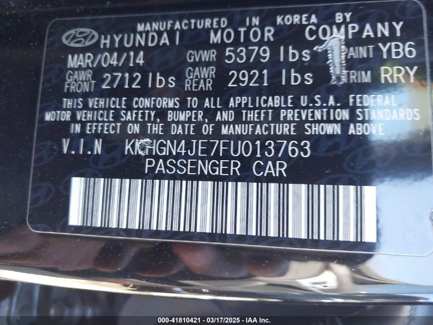 Color BlackCylinders 6Drive Rear wheel driveVIN KMHGN4JE7FU******State Run & Drive VerifiedDamage Front or back AutoRIA