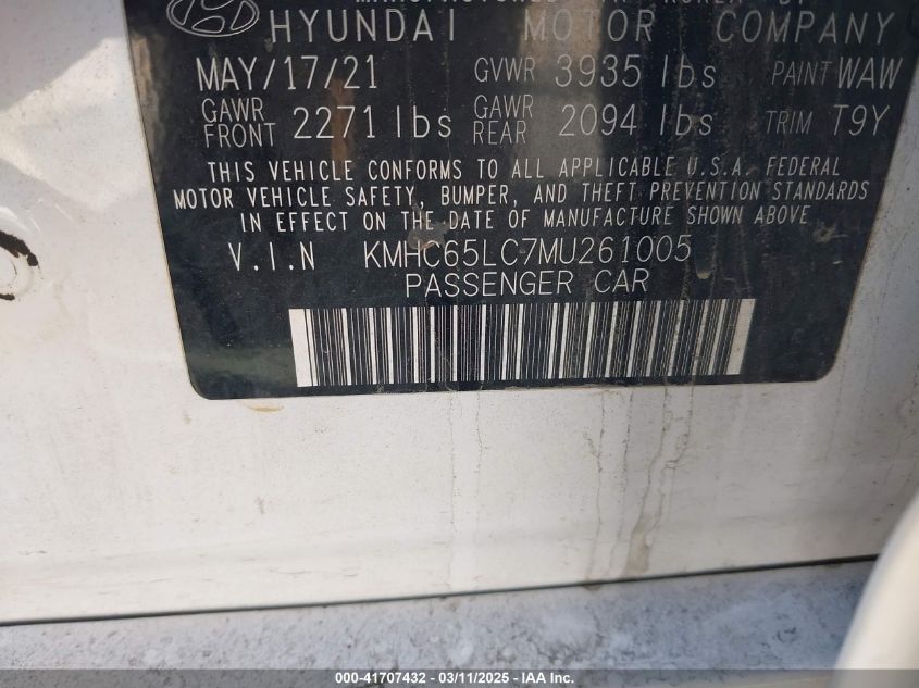 2021 HYUNDAI IONIQ 2021 Hybrid, 1.6, Front wheel drive, VIN - KMHC65LC7MU****** from the USA