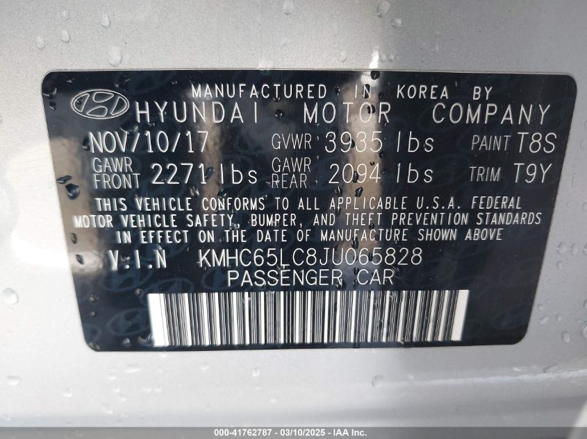 Color SilverCylinders 4Drive Front wheel driveVIN KMHC65LC8JU******State Run & Drive VerifiedDamage Right sideAuction date 2025-03-26 AutoRIA