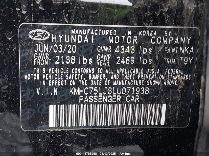 2020 HYUNDAI IONIQ ELECTRIC 2020 Electric, 0.0, Front wheel drive, VIN - KMHC75LJ3LU****** from the USA