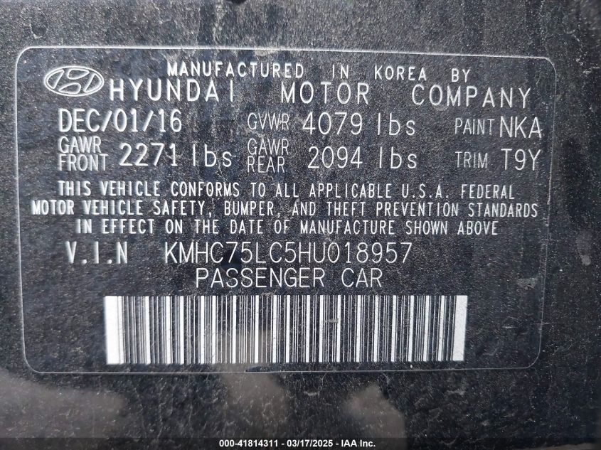 Color BlackCylinders 4Drive Front wheel driveVIN KMHC75LC5HU******State Run & Drive VerifiedDamage Front or back AutoRIA