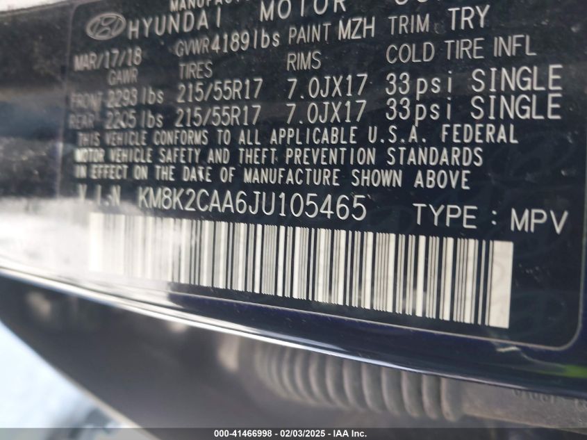2018 HYUNDAI KONA 2018 Gasoline, 2.0, Full drive, VIN - KM8K2CAA6JU****** from the USA