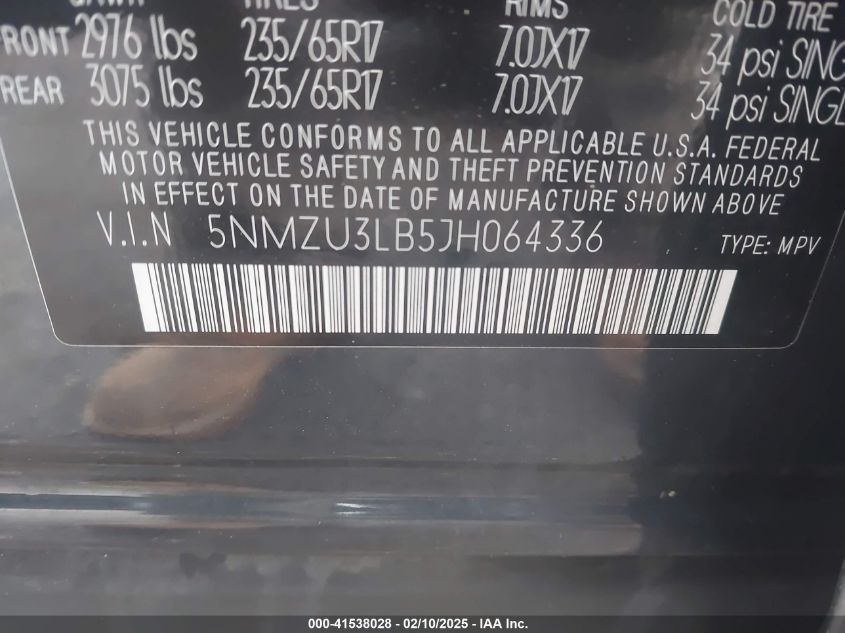 Color GrayCylinders 4Drive Front wheel driveVIN 5NMZU3LB5JH******State Run & Drive VerifiedDamage Front left AutoRIA