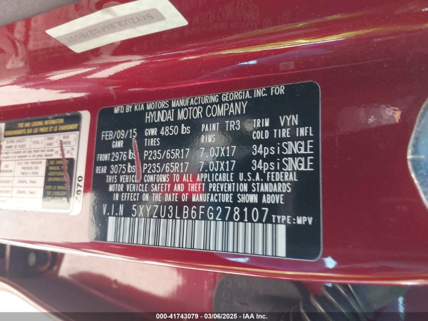Color RedCylinders 4Drive Front wheel driveVIN 5XYZU3LB6FG******State Run & Drive VerifiedDamage Front or back AutoRIA