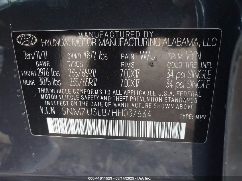 2017 HYUNDAI SANTA FE 2017 Gasoline, 2.4, Front wheel drive, VIN - 5NMZU3LB7HH****** from the USA