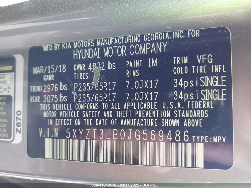 2018 HYUNDAI SANTA FE 2018 Gasoline, 2.4, Front wheel drive, VIN - 5XYZT3LB0JG****** from the USA