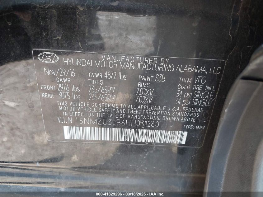 2017 HYUNDAI SANTA FE 2017 Gasoline, 2.4, Front wheel drive, VIN - 5NMZU3LB6HH****** from the USA