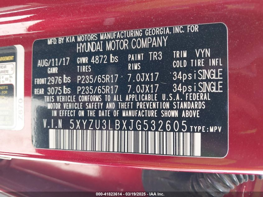 Color RedCylinders 4Drive Front wheel driveVIN 5XYZU3LBXJG******State Run & Drive VerifiedDamage Insignificant AutoRIA