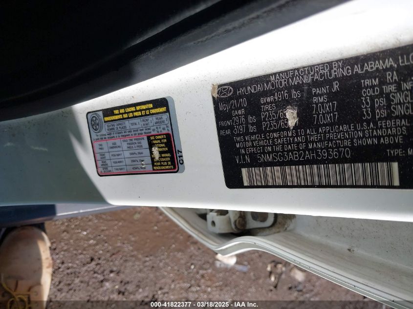 2010 HYUNDAI SANTA FE 2010 Gasoline, 2.4, Front wheel drive, VIN - 5NMSG3AB2AH****** from the USA