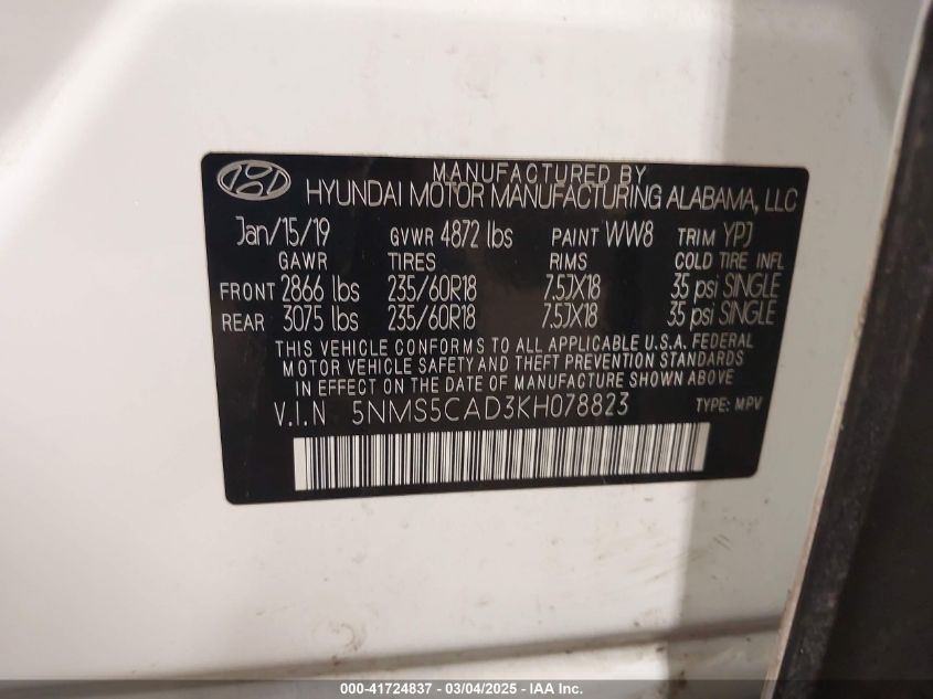 2019 HYUNDAI SANTA FE 2019 Gasoline, 2.4, Full drive, VIN - 5NMS5CAD3KH****** from the USA