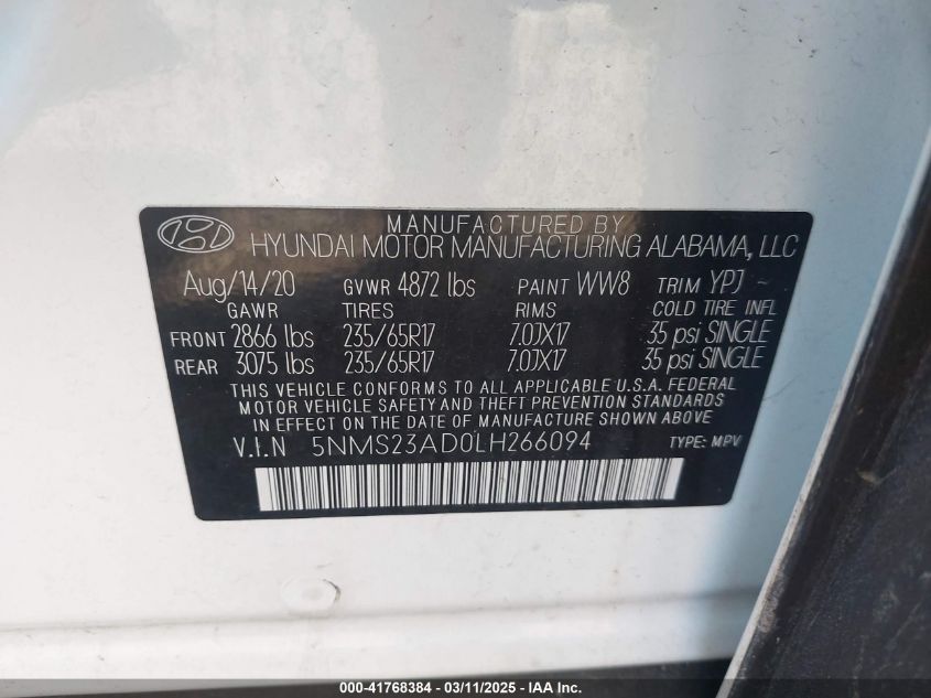 Color WhiteCylinders 4Drive Front wheel driveVIN 5NMS23AD0LH******State Run & Drive VerifiedDamage Front or back AutoRIA