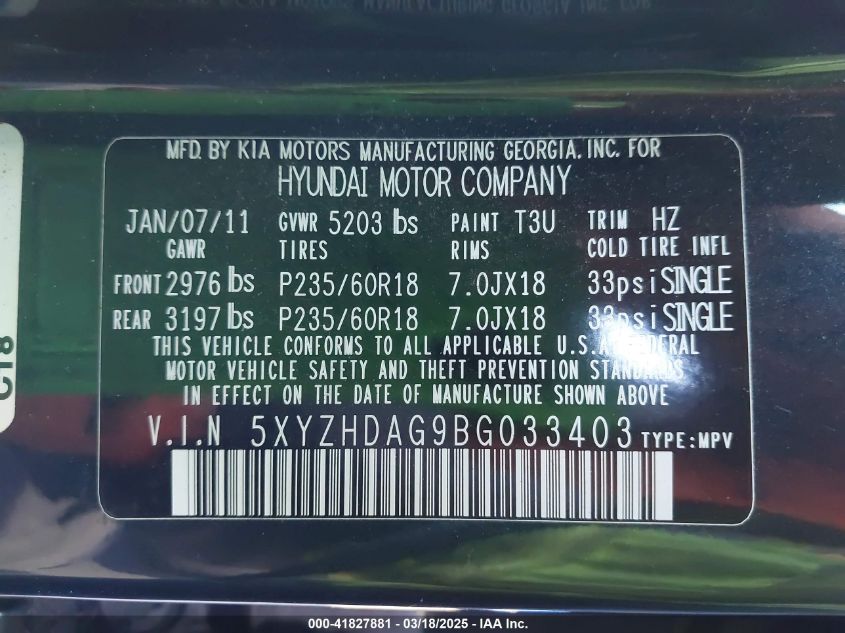 Color BlueCylinders 6Drive Full driveVIN 5XYZHDAG9BG******State Run & Drive VerifiedDamage Vandalism AutoRIA