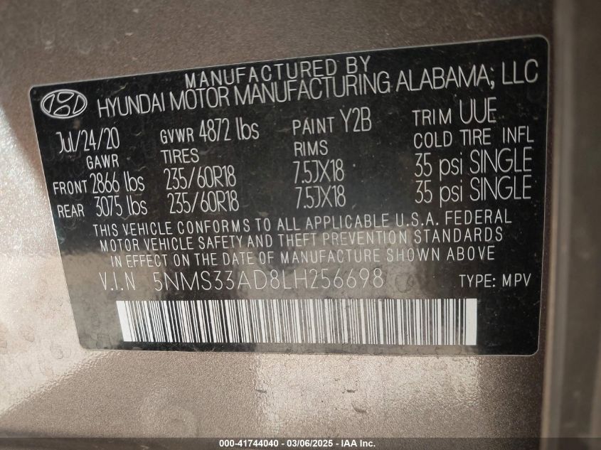 2020 HYUNDAI SANTA FE 2020 Gasoline, 2.4, Front wheel drive, VIN - 5NMS33AD8LH****** from the USA