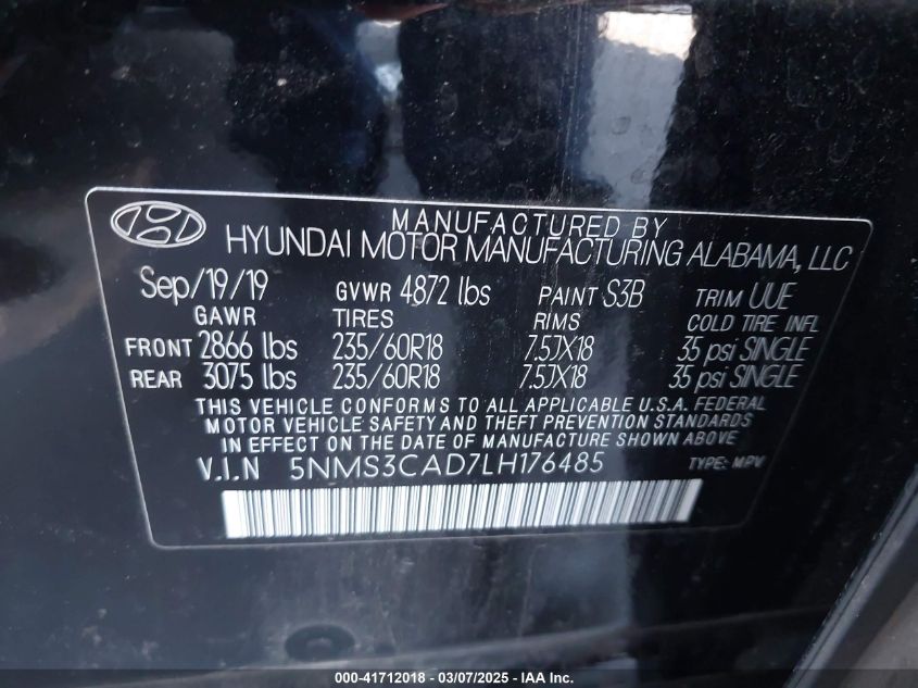 2020 HYUNDAI SANTA FE 2020 Gasoline, 2.4, Full drive, VIN - 5NMS3CAD7LH****** from the USA