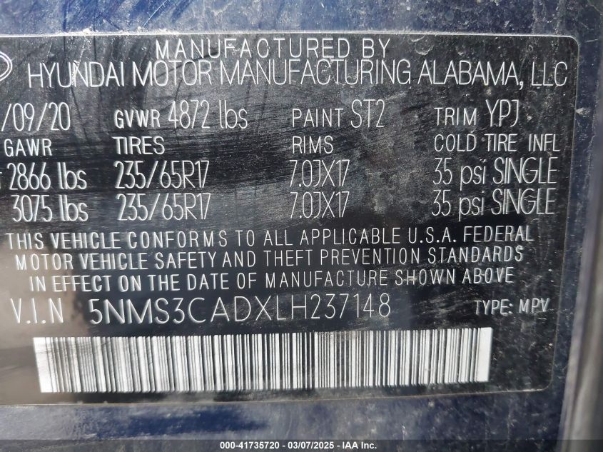 2020 HYUNDAI SANTA FE 2020 Gasoline, 2.4, Full drive, VIN - 5NMS3CADXLH****** from the USA