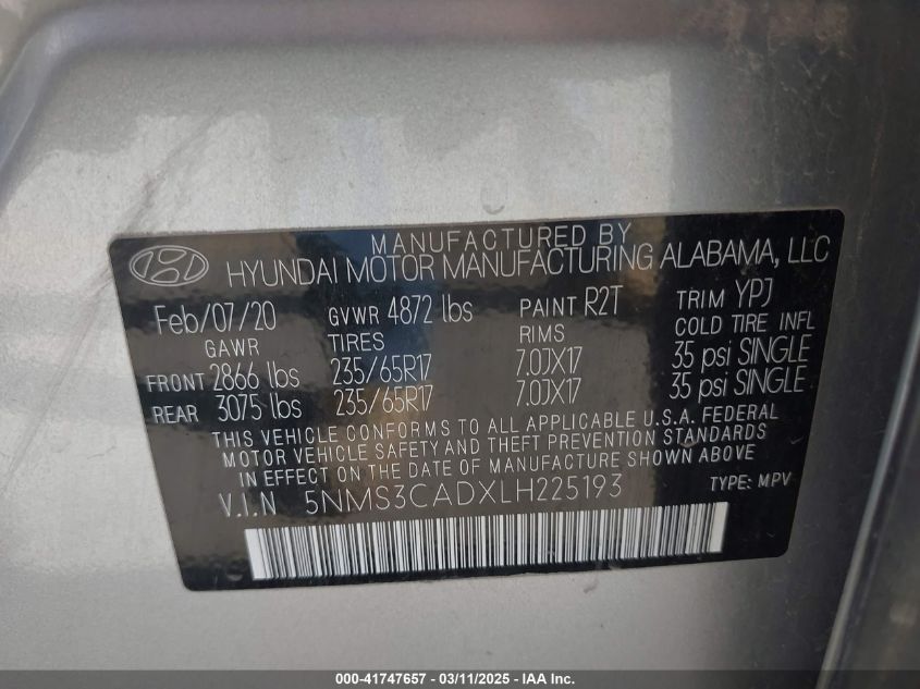 2020 HYUNDAI SANTA FE 2020 Gasoline, 2.4, Full drive, VIN - 5NMS3CADXLH****** from the USA