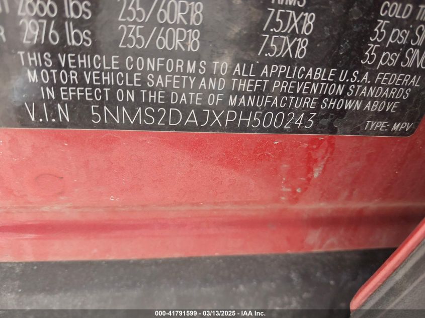 Color RedCylinders 4Drive Full driveVIN 5NMS2DAJXPH******State Run & Drive VerifiedDamage Front rightAuction date 2025-03-20 AutoRIA