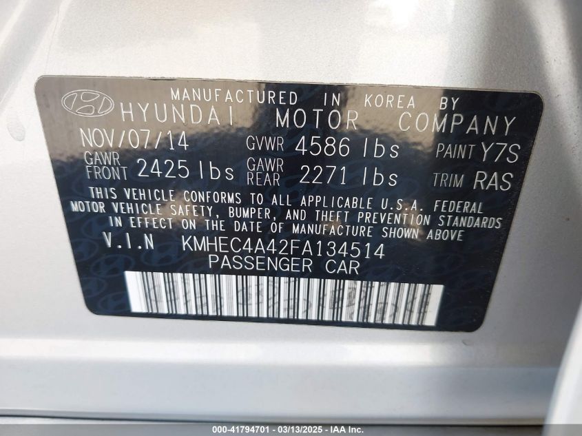 Color SilverCylinders 4Drive Front wheel driveVIN KMHEC4A42FA******State Run & Drive VerifiedDamage Front or back AutoRIA