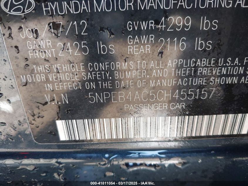 2012 HYUNDAI SONATA 2012 Gasoline, 2.4, Front wheel drive, VIN - 5NPEB4AC5CH****** from the USA