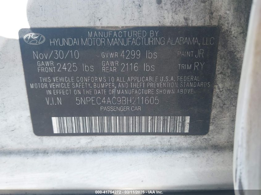 2011 HYUNDAI SONATA 2011 Gasoline, 2.4, Front wheel drive, VIN - 5NPEC4AC9BH****** from the USA