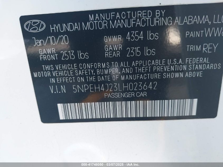 2020 HYUNDAI SONATA 2020 Gasoline, 1.6, Front wheel drive, VIN - 5NPEH4J23LH****** from the USA